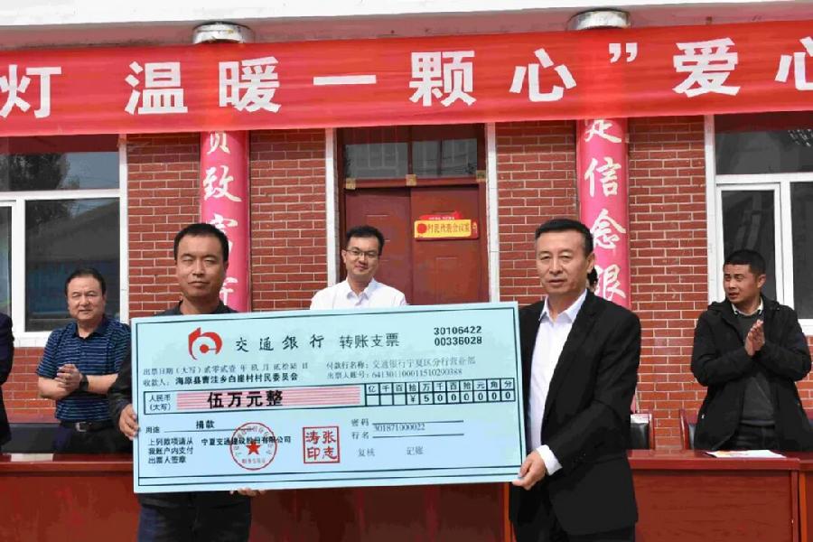 仪式上,宁夏交建向白崖村捐赠5万元,用于定向开展道路亮化工程,方便白崖村村民出行,减少夜间道路安全隐患,助力乡村振兴事业的发展。
